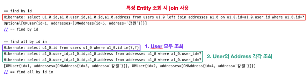 id로 특정 상위 Entity를 조회하는 경우는 left join을 하기 때문에 query를 단 하나만 사용한다.