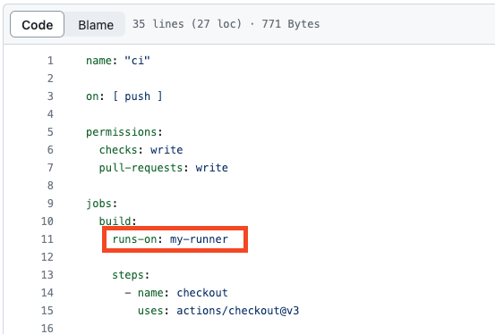 runs-on에 action이 실행될 runner의 label을 지정해주면된다.