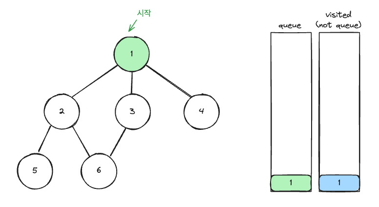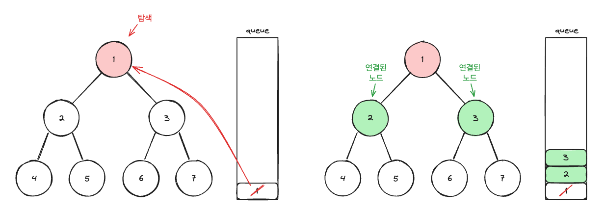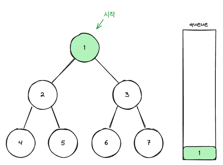 1. 먼저 탐색해야할 node queue에 root node를 추가한다.