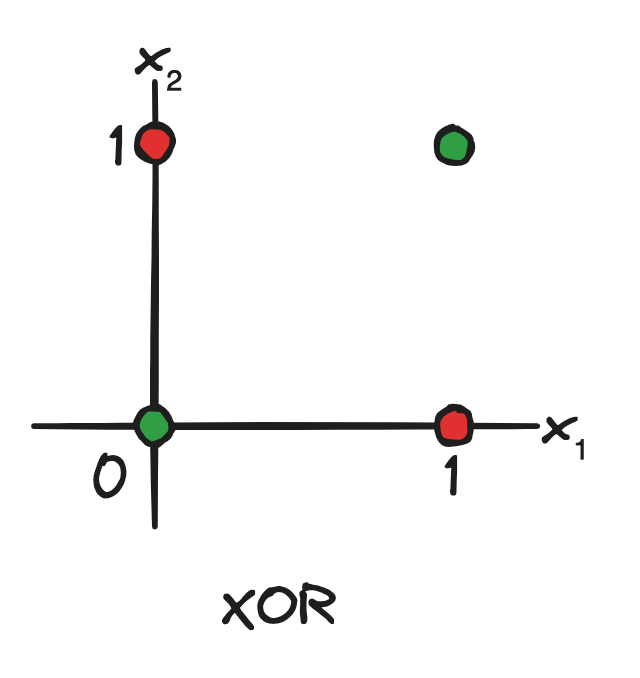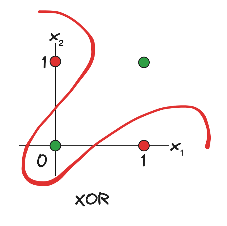 즉, 한 층의 perceptron으로는 XOR gate를 구현할 수 없다.