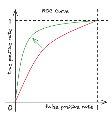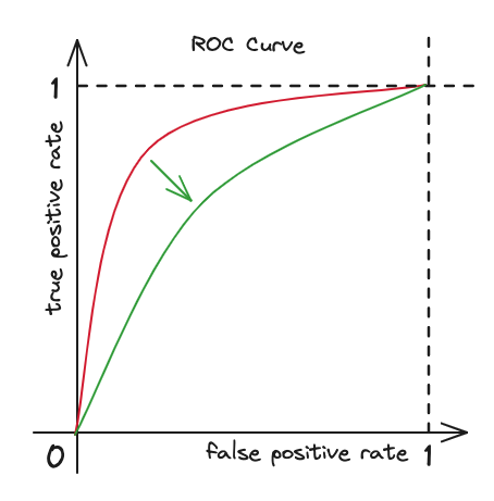 클래스를 더 정확하게 분류할 수 있게 되니 true positive rate가 높아지게 되고 반대로 false posotive rate는 낮아지게 될 것이다.
