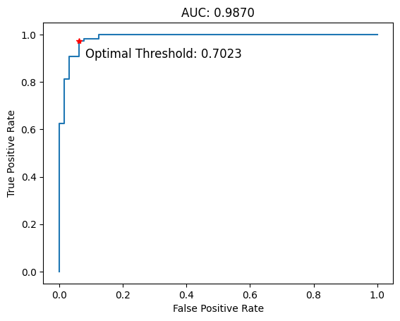 # optimal_threshold=0.7023202565248234, j=0.9094626168224299, fpr=0.0625, tpr=0.9719626168224299