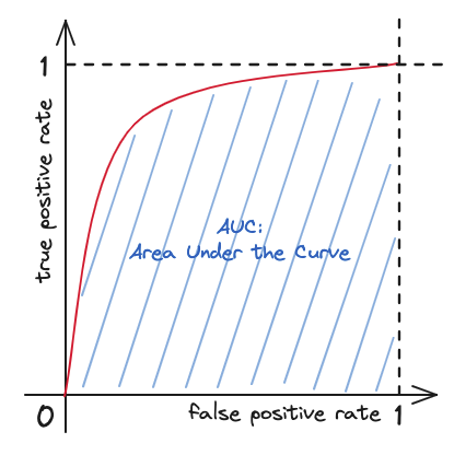 또한 성능이 좋아질 수록 ROC Curve 하단의 면적이 넓어지게 되는데, 이 면적은 이진 분류기 모델의 성능을 측정하는 또 하나의 지표가 된다.