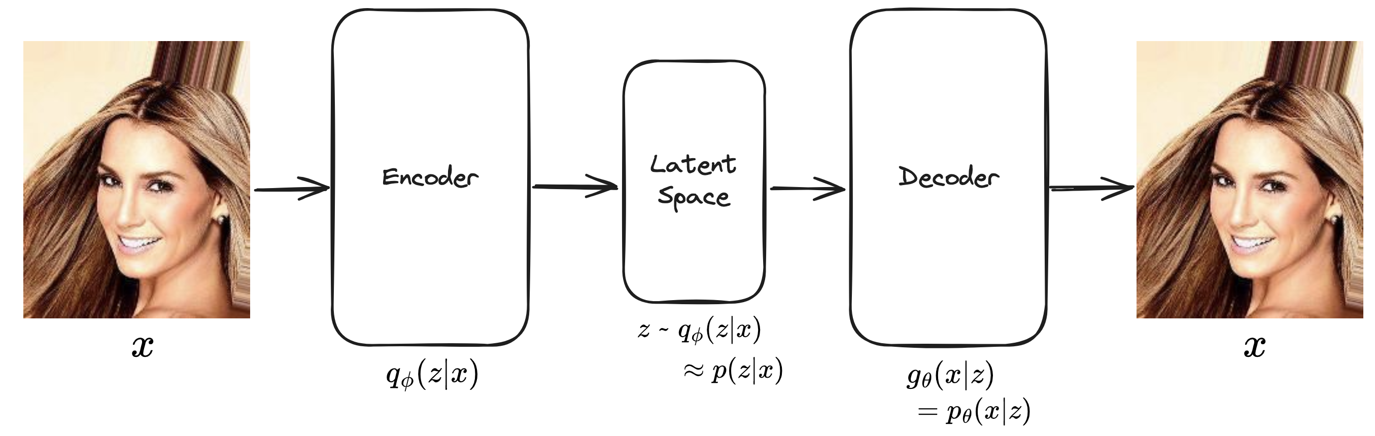 그렇기 때문에 latent space에서 feature를 적절하게 학습했다면, latent space에서 샘플링한 z를 통해서 다양한 이미지를 생성할 수 있게될 것이다.