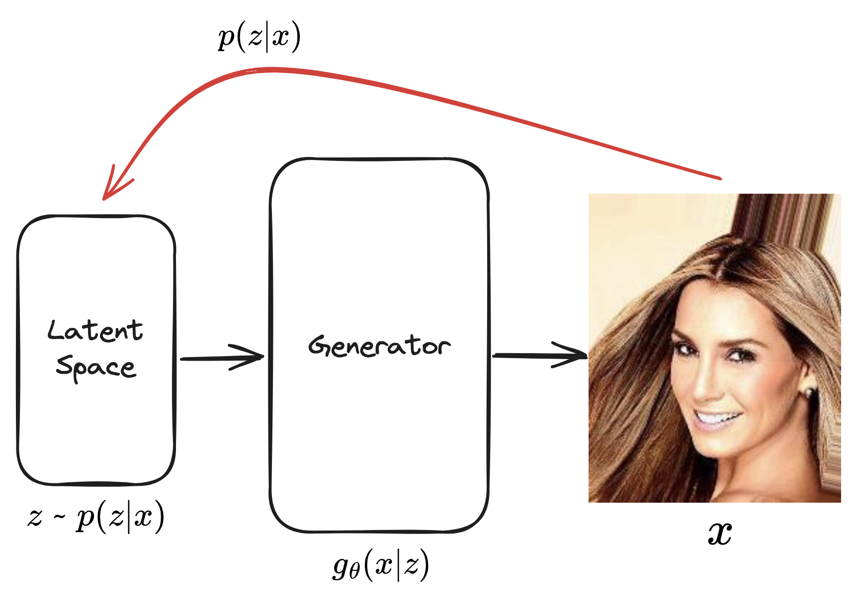 예를 들어 사람 얼굴 이미지를 생성하는 것이 목적이라면 latent space의 각 차원은 사람 얼굴에 대한 feature인 고개 각도, 얼굴 길이, 눈의 모양 등을 다룰 수 있을 것이다.