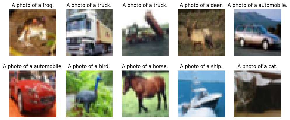 여기서는 CIFAR10 데이터셋을 사용할 것이고, image의 label을 통해 text를 생성하여 pair 데이터를 만들어 사용할 것이다.