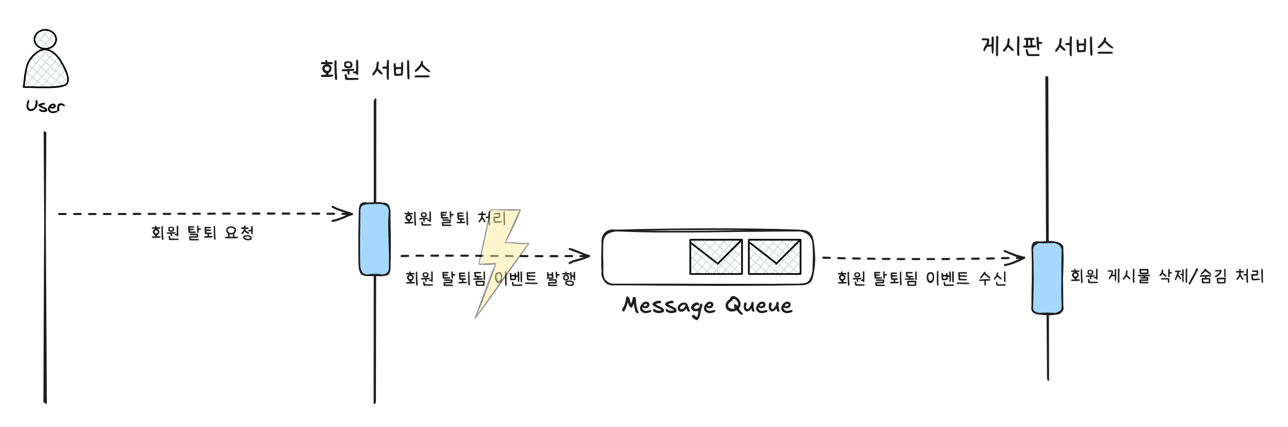 ('게시판 서비스'에서만 데이터가 처리되었고 '회원 서비스'에서는 데이터 처리가 되지 않았기 때문에 발생 시 골치 아픈 케이스이다)