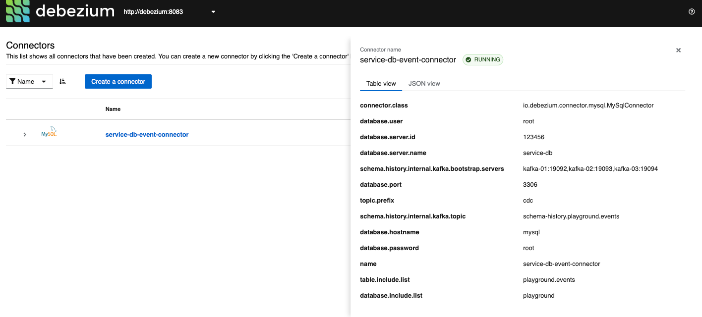 "connector.class": "io.debezium.connector.mysql.MySqlConnector",