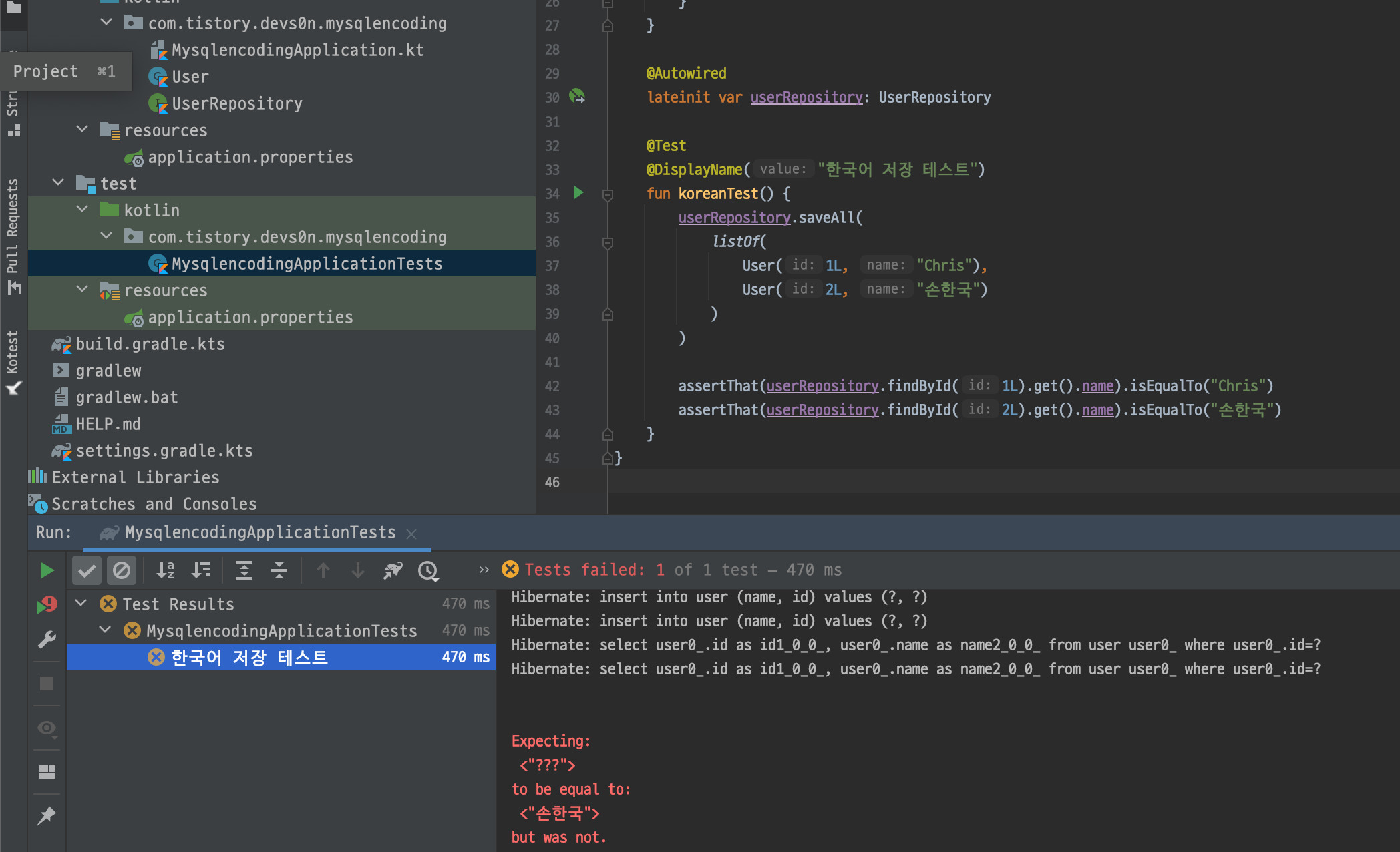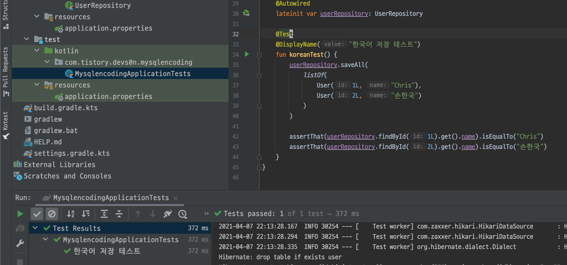 assertThat(userRepository.findById(2L).get().name).isEqualTo("손한국")