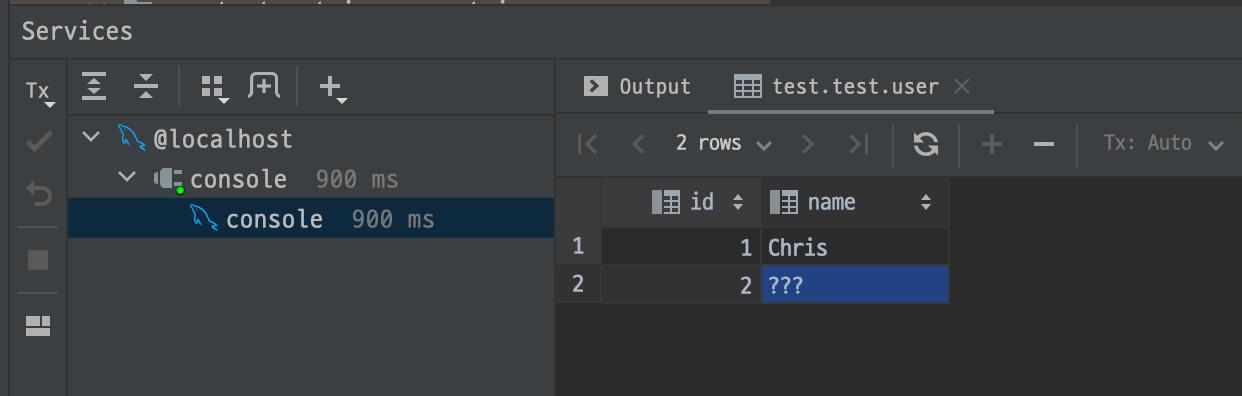 직접 테스트 MySQL container에 접속하여 값을 조회하면 다음과 같이 영어는 잘 저장되나 한국어는 ???로 저장된 것을 확인할 수 있다.