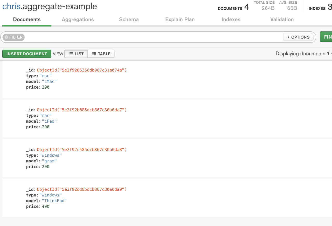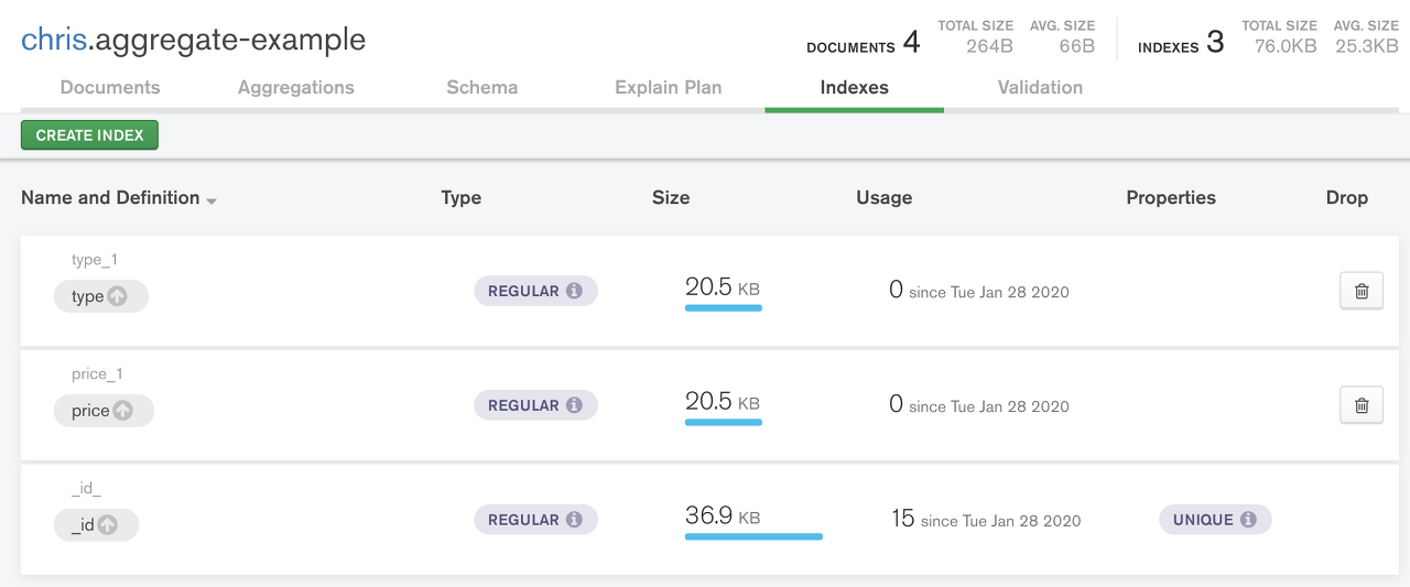 "docsExamined" : 4 <=============== scanned documents: 4 = Full Scan