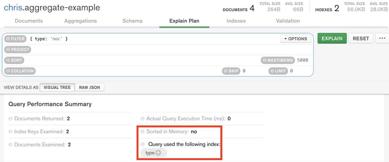 하지만 단순히 index를 타는지 확인할 경우 Compass의 Explain Plan 사용하는 편이 더 편하다.