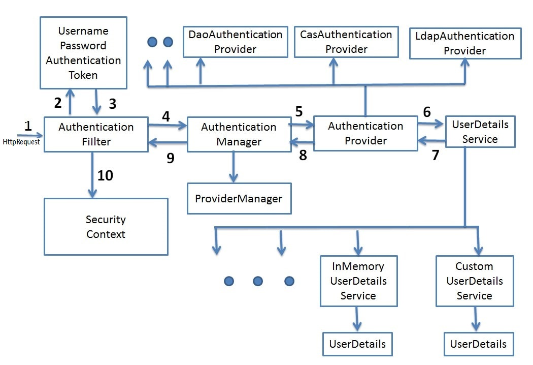 - AuthenticationProvider: DaoAuthenticationProvider (AbstractUserDetailsAuthenticationProvider class)
