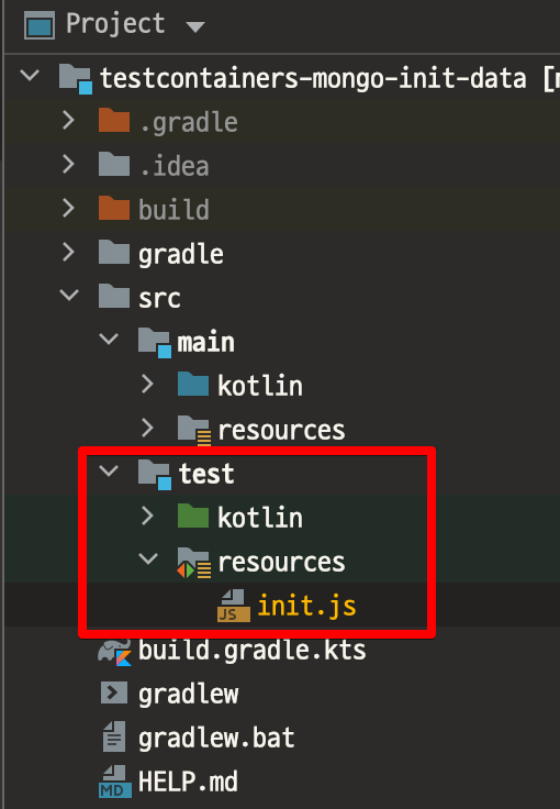 init script는 test resources 디렉토리에 추가하도록 하겠다.