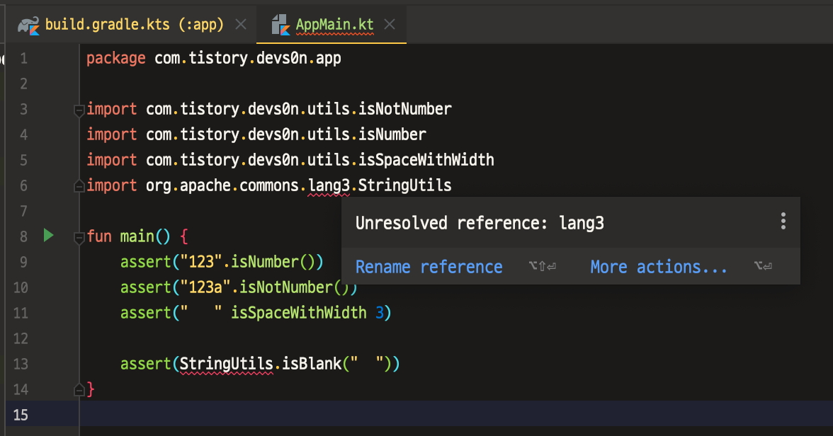 제대로 의존성 설정이 되었다면 app 모듈에서 utils 모듈를 import 하는데 있어 문제가 없을 것이다.