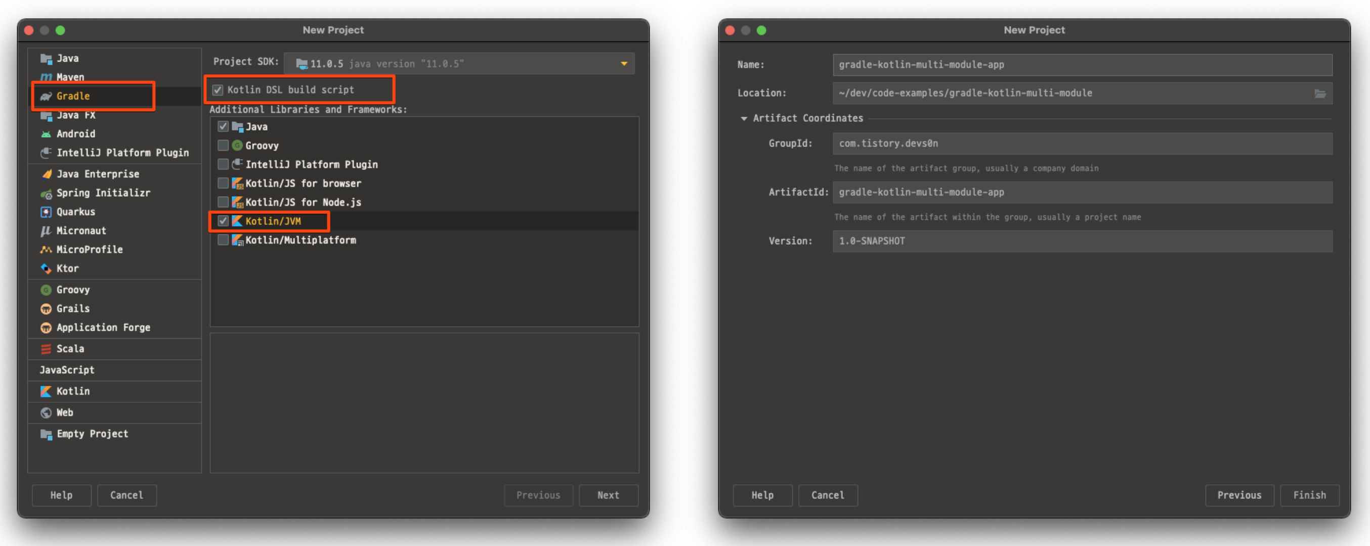 아래와 같이 Kotlin 설정을 한 뒤 프로젝트 GroupId, ArtifactId 등을 설정한 후 프로젝트를 생성한다.