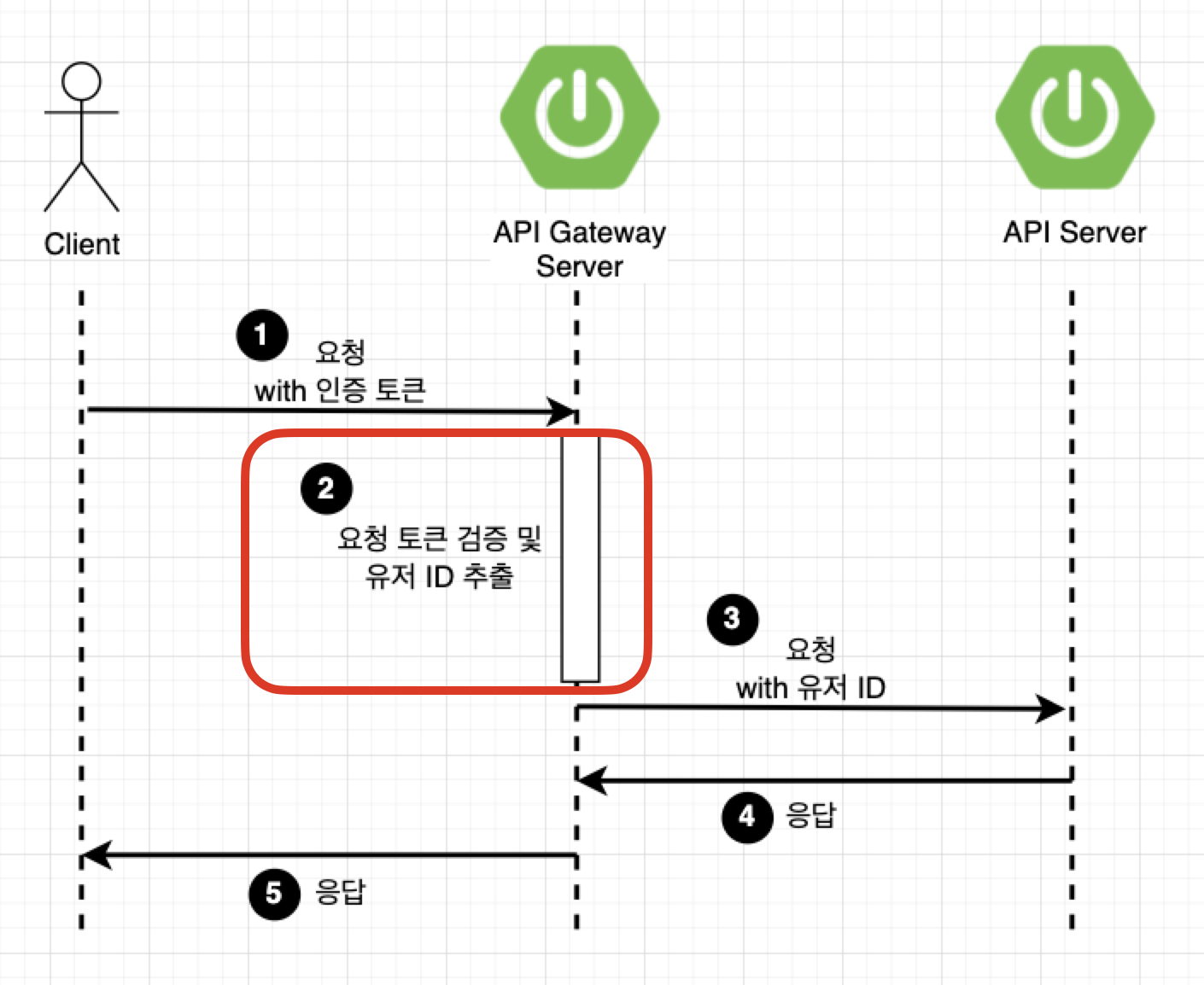 앞서 봤던 시퀀스 다이어그램에서 API Gateway에서 처리해야할 인증 기능에 대한 필터를 추가해보자.
