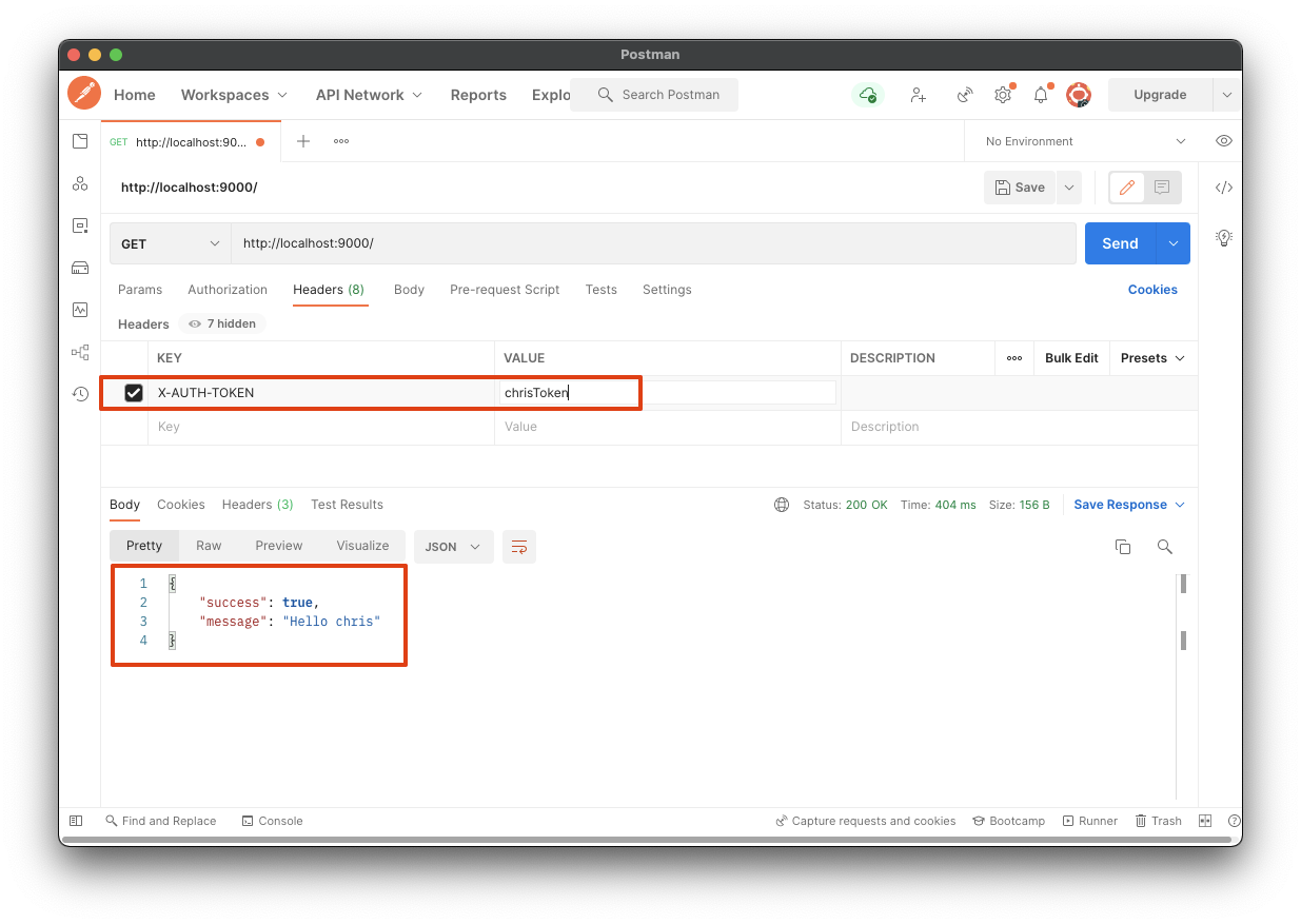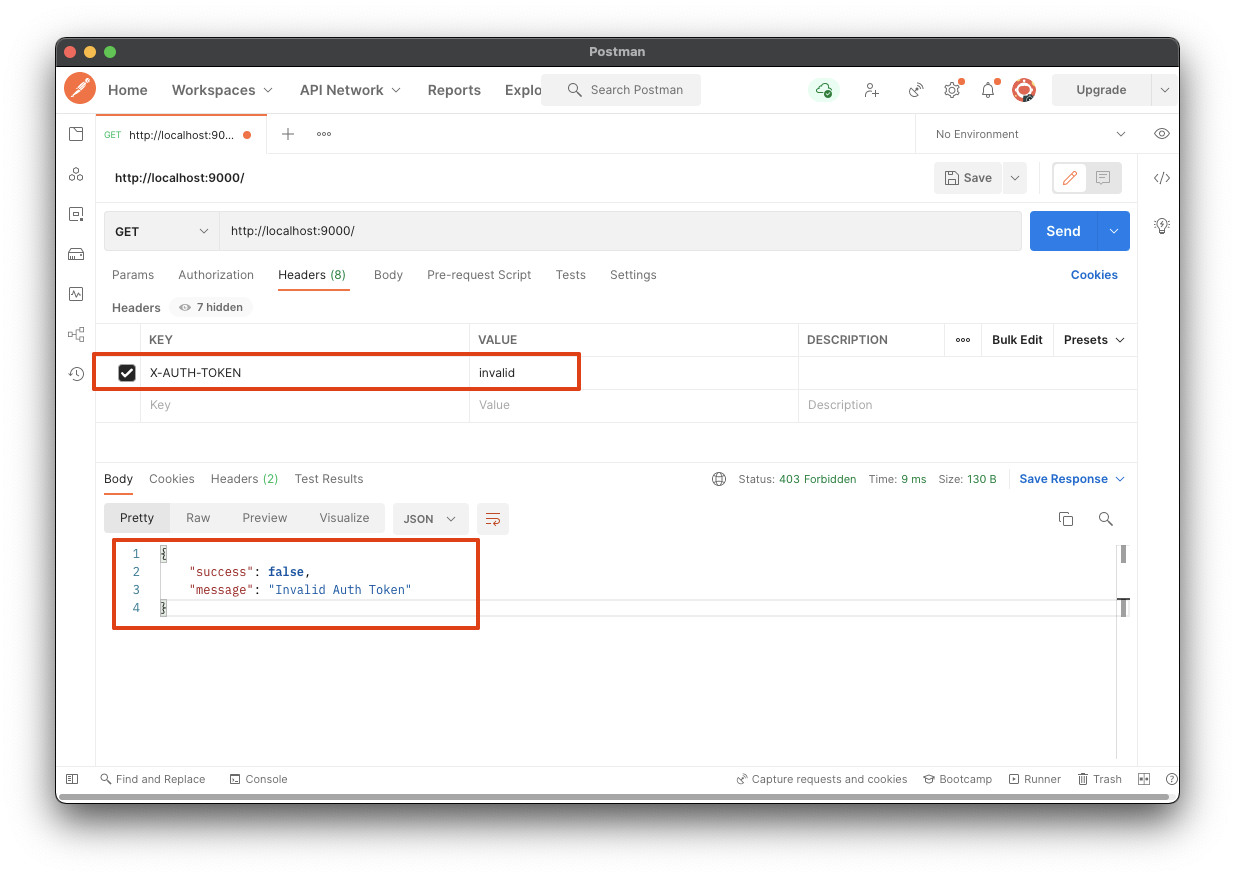 앞서 만든 API 서버와 API Gateway 서버와 함께 실행 시킨 뒤에 요청을 보내 인증 필터 기능이 잘 동작하는지를 확인해보자.