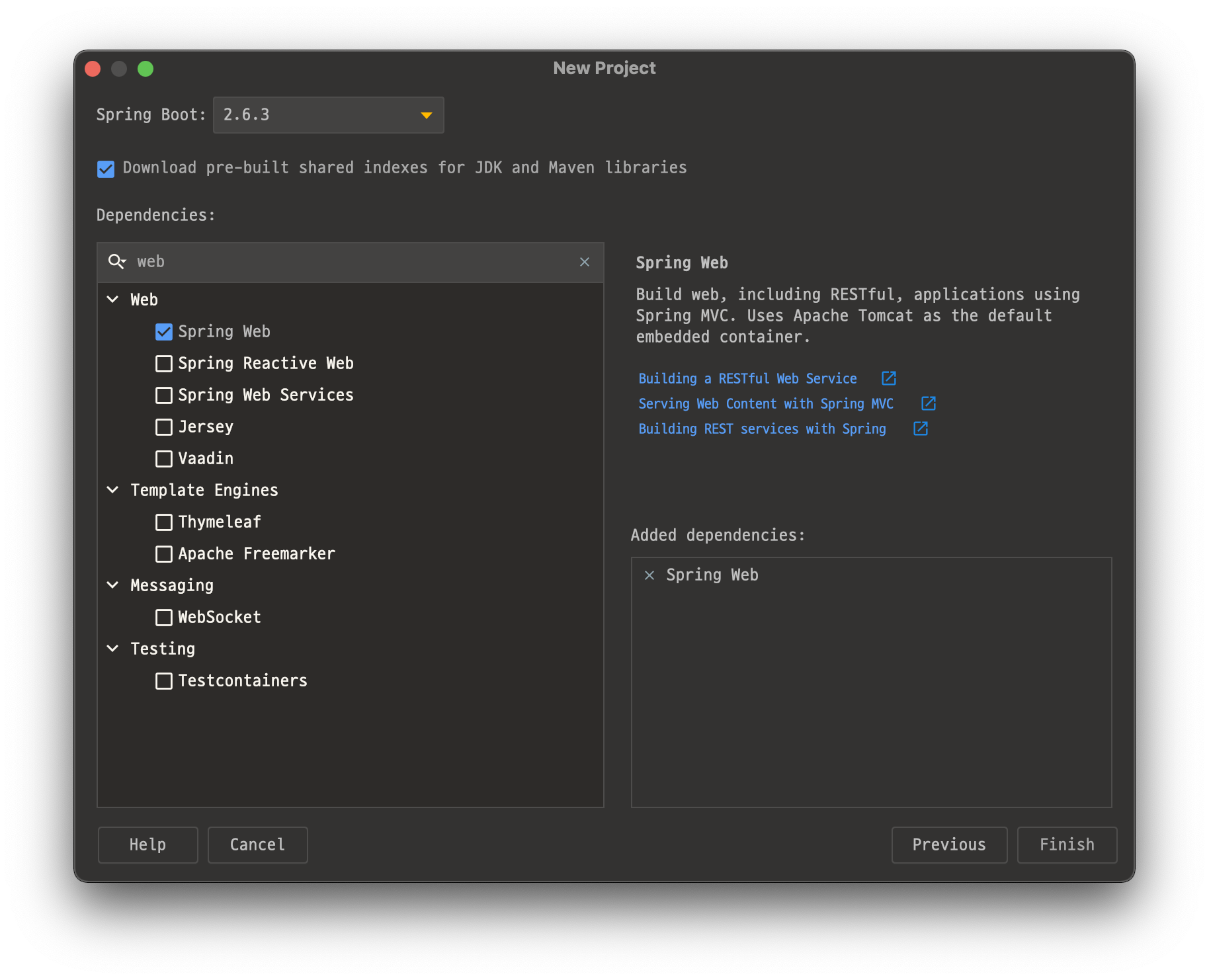 Spring Web dependency만 추가한 SpringBoot 프로젝트를 생성한다.