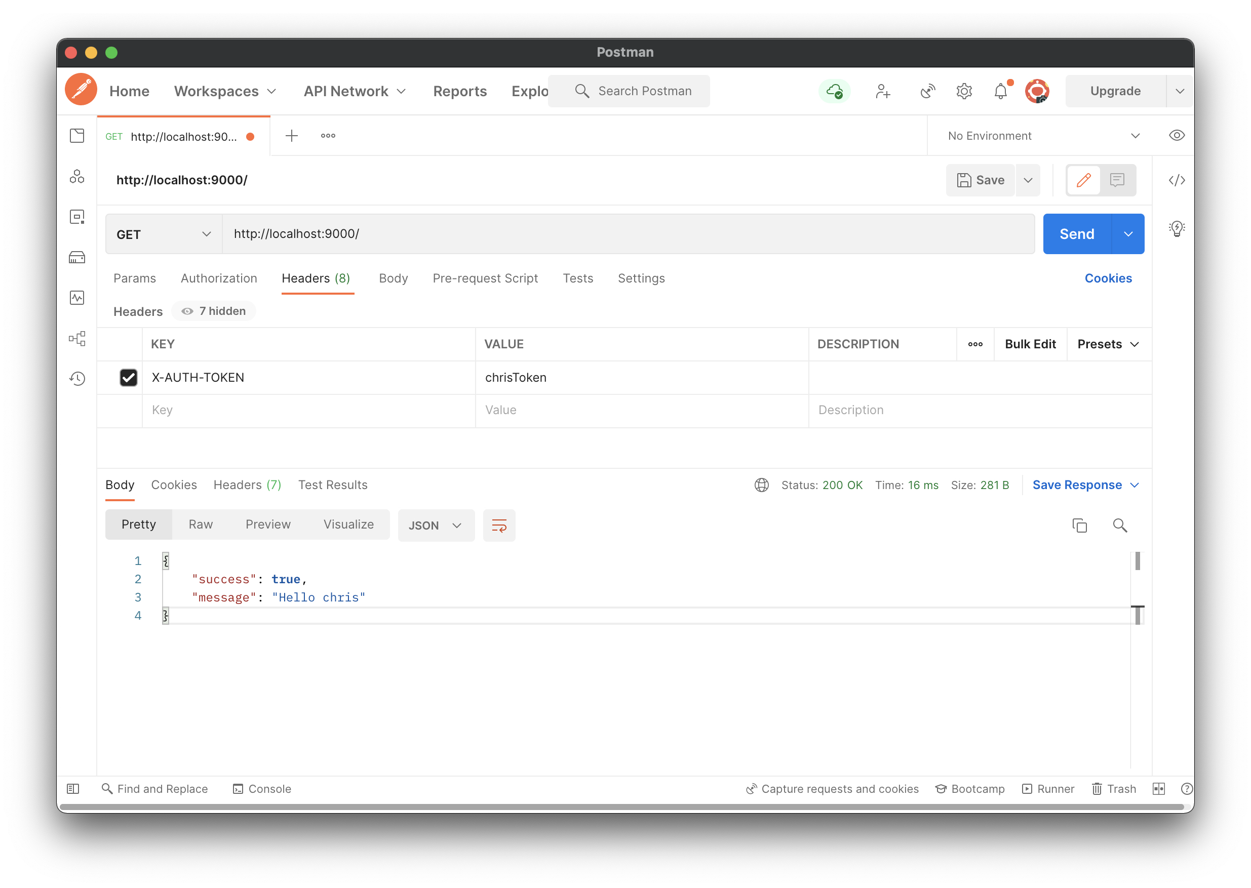등록된 인증토큰을 보낸 경우정상적으로 요청이 API 서버로 라우팅되는 것을 확인할 수 있다.