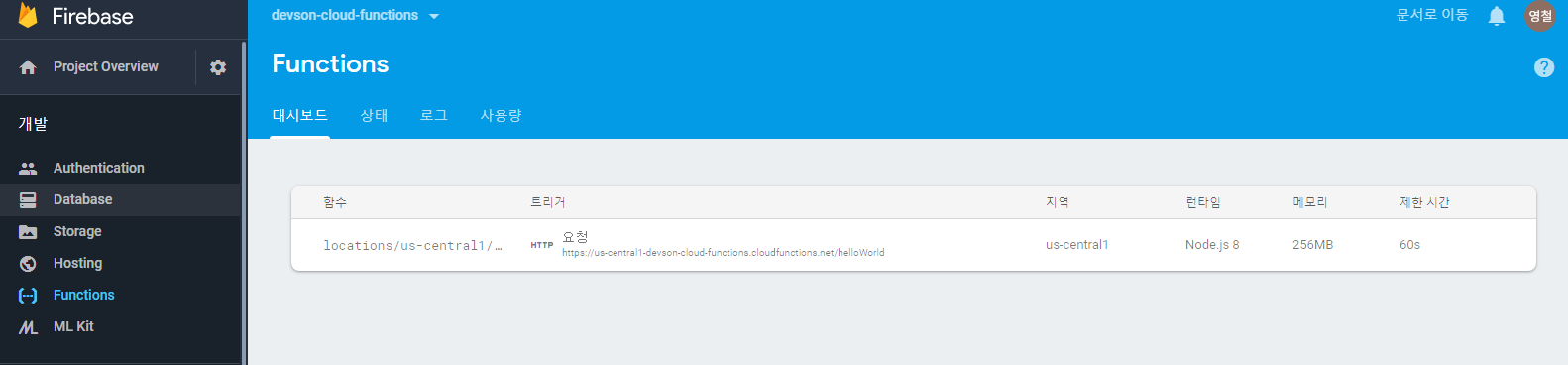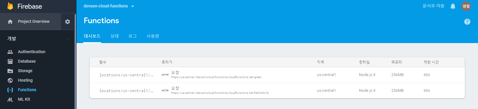 https://firebase.google.com/docs/functions/manage-functions?hl=ko