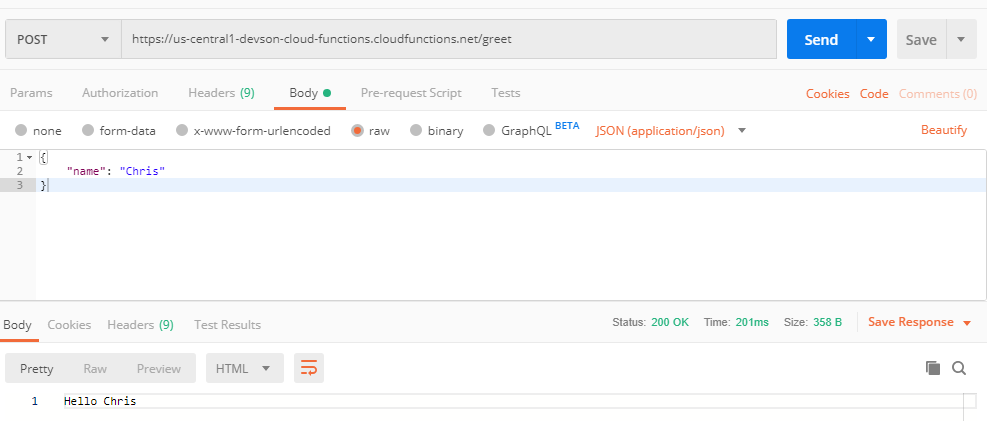 Function URL (greet): https://us-central1-devson-cloud-functions.cloudfunctions.net/greet