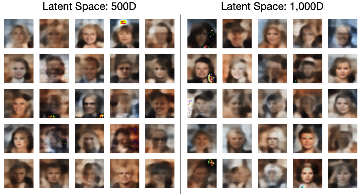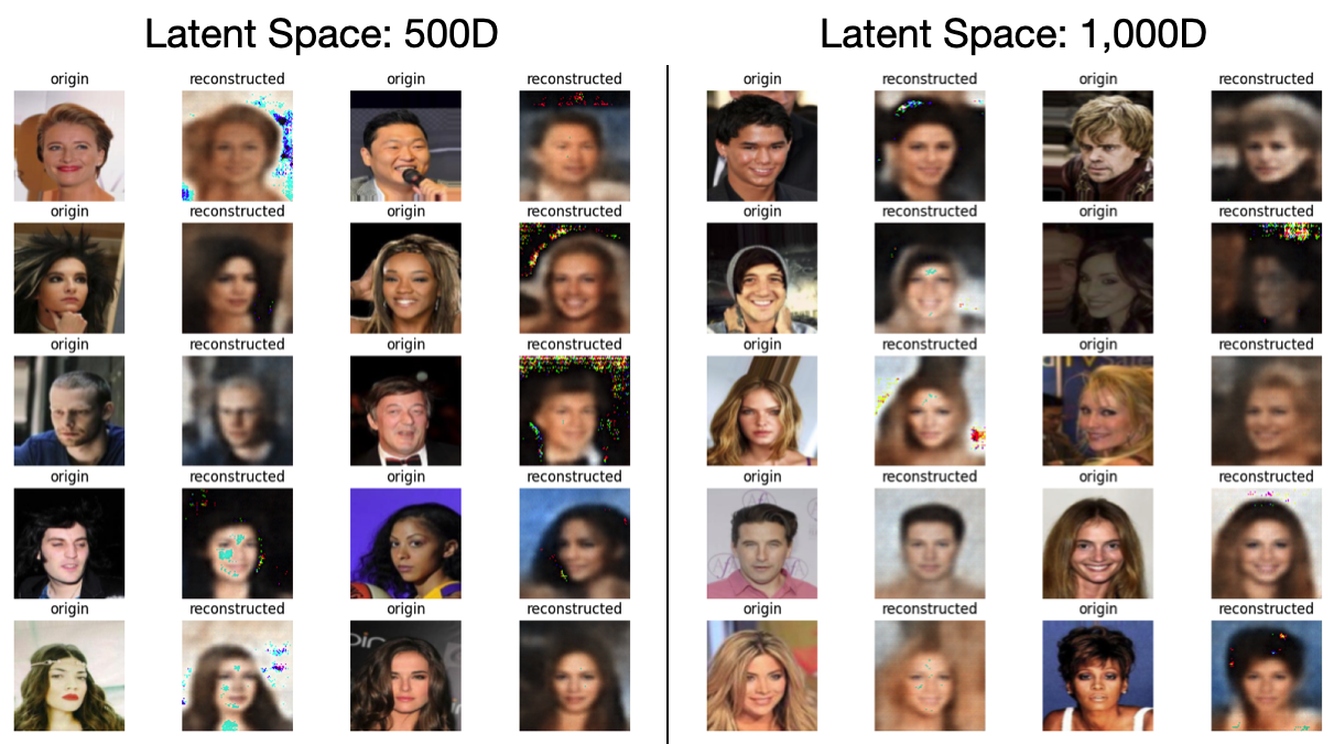 latent space 차원에 따른 비교를 해보기 위해 차원을 500과 1,000으로 두었을 때를 비교해보았다.